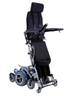電動站立輪椅,可協助使用者自動從坐姿升至站姿並操作,適合室內外使用