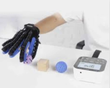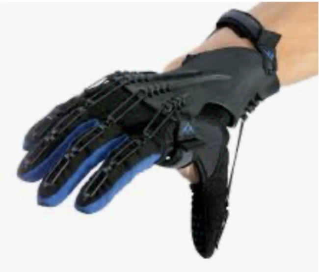 一款機械助力手套,利用智能感測器協助患者訓練手部動作。
